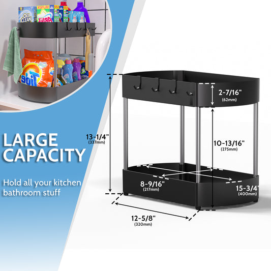 JZVXX Under sink organizers and storage, Bathroom kitchen cabinet organizer, Anti Rust- Hydrophobic design- Extra large volume- Black